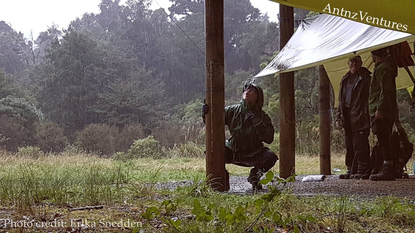 The rain had well and truly set in by Saturday morning and an early start to our teaching session meant I had to haul my butt out of my hammock to teach. Some of the students had learned during the night that their tents weren’t quite as waterproof as they thought; and why it is recommended that they test their gear before these trips out. This was the day that I also found out that my “old faithful” jacket was no longer waterproof. I’m glad I had packed the appropriate wicking, warm clothing so although I was wet most of the day, I was at least warm. We were all thankful for the shelters we had set up the night before and we spent as much time as possible teaching the skills before putting them into use in the rain. For some reason ADNZ Ben didn’t seem to understand how shelter works and ended up drenched.